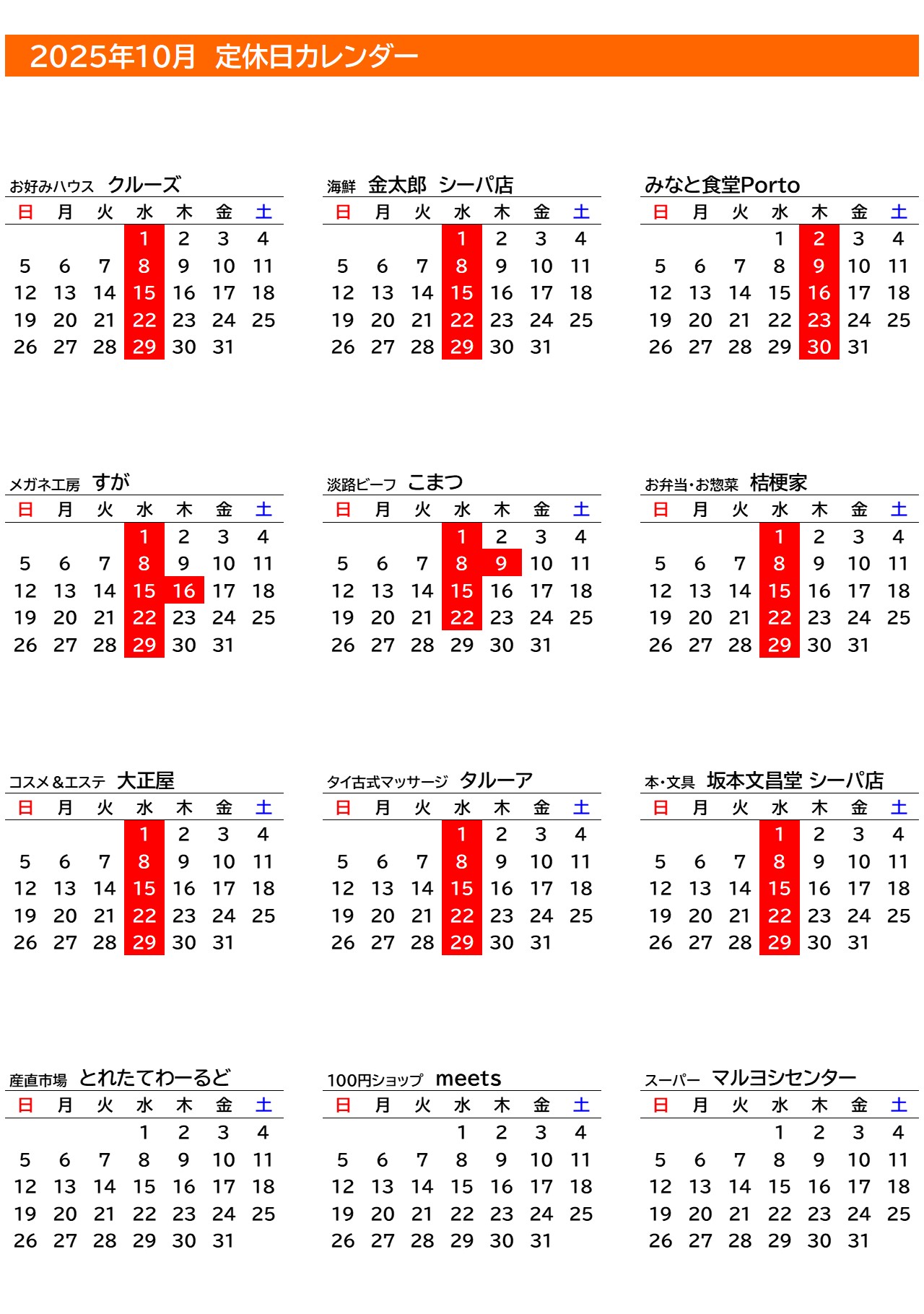 2025年10月 イベントカレンダー