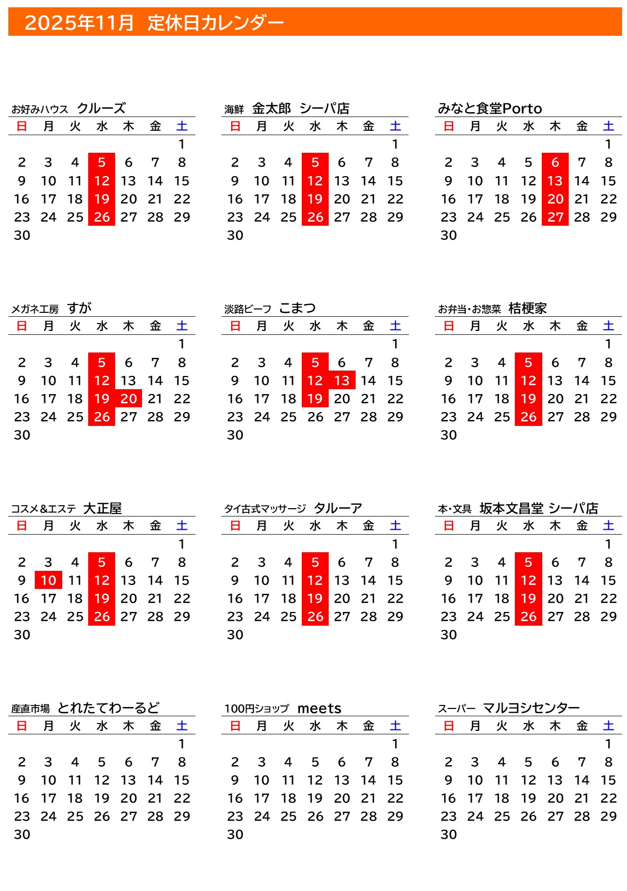 2025年11月 イベントカレンダー