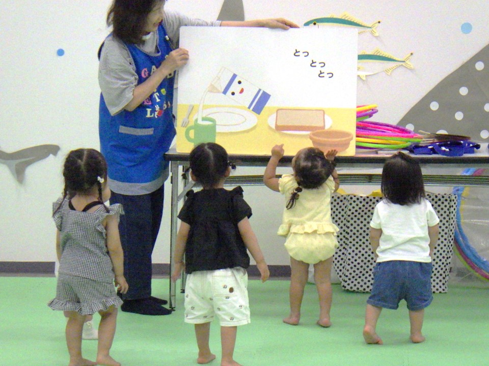 手遊び・体操は「つんつんつんとんとんとん」「こちょこちょ電車」「ジャングルぐるぐる」