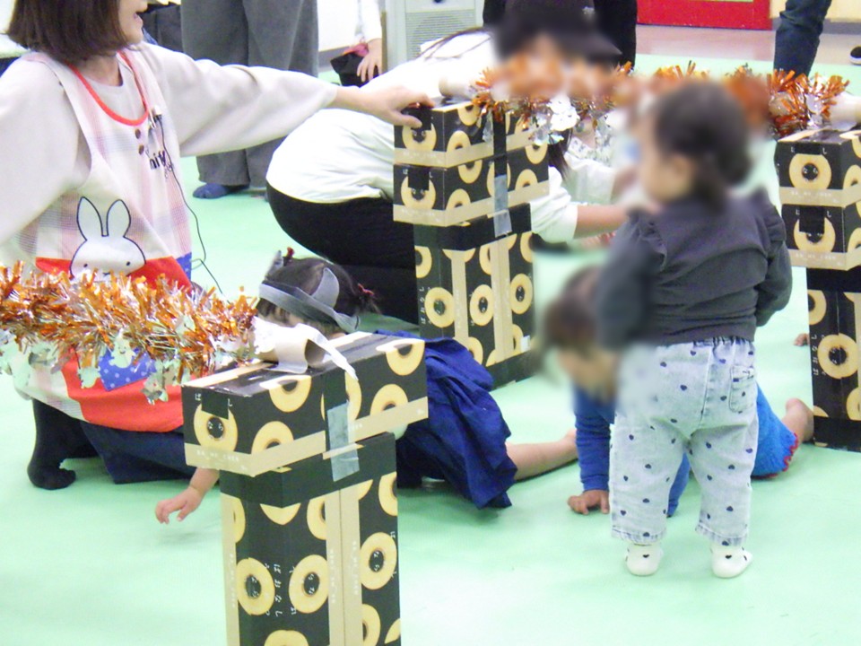 ハロウィン遊びは、トンネルをくぐってお菓子をゲット!